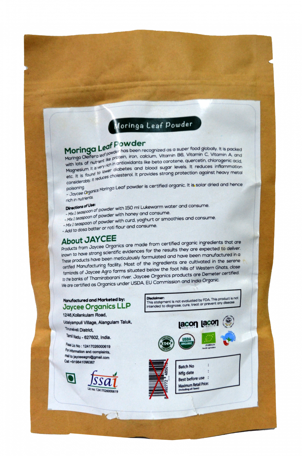 - Corporate & Sales Office Jaycee Organics LLP No.1 Ground floor, Bhagavantham street, T Nagar, Chennai – 600 017 Tamilnadu, India